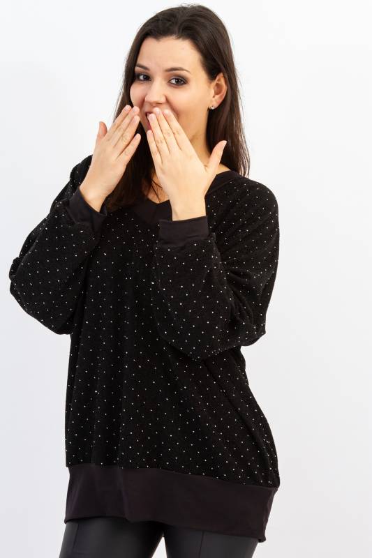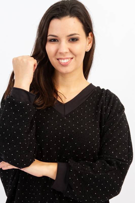 - Típus: Alkalmi extra nagy méretű bőfazonú V-nyakú anyagában csillagós denevér és hosszú ujjas női passzés felső