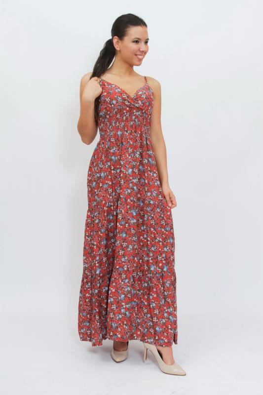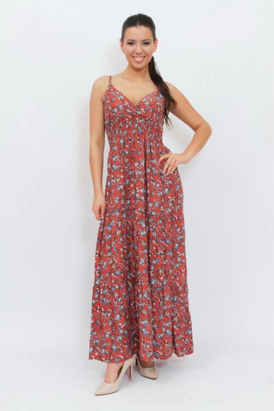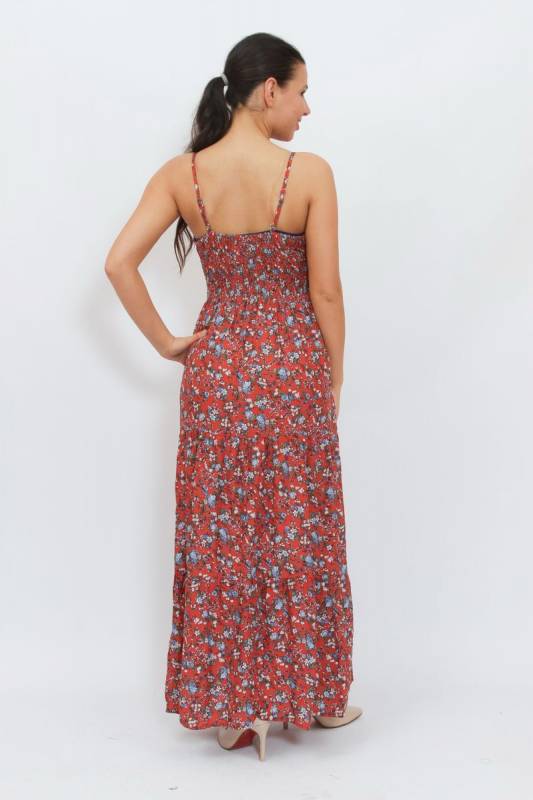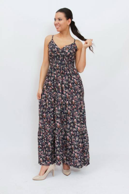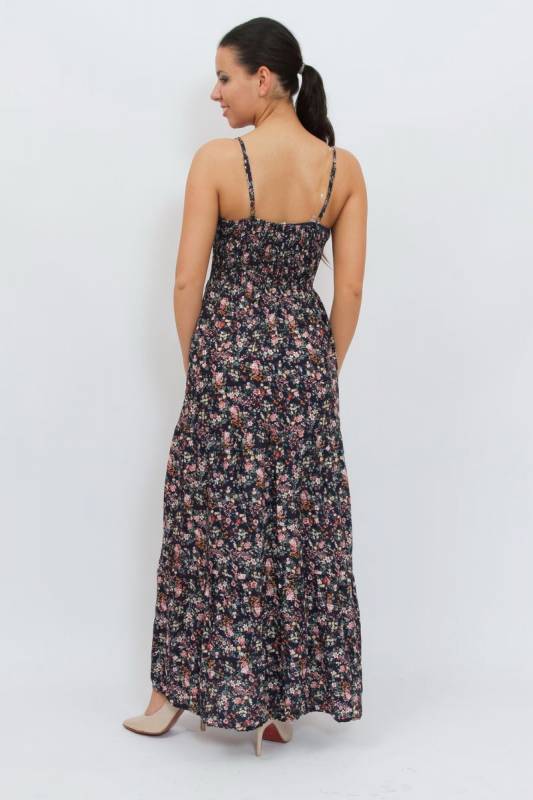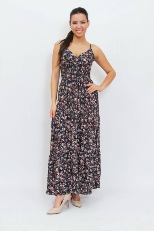 Divatos anyagában apró virág mintás állítható spagetti pántos hosszú maxi ruha