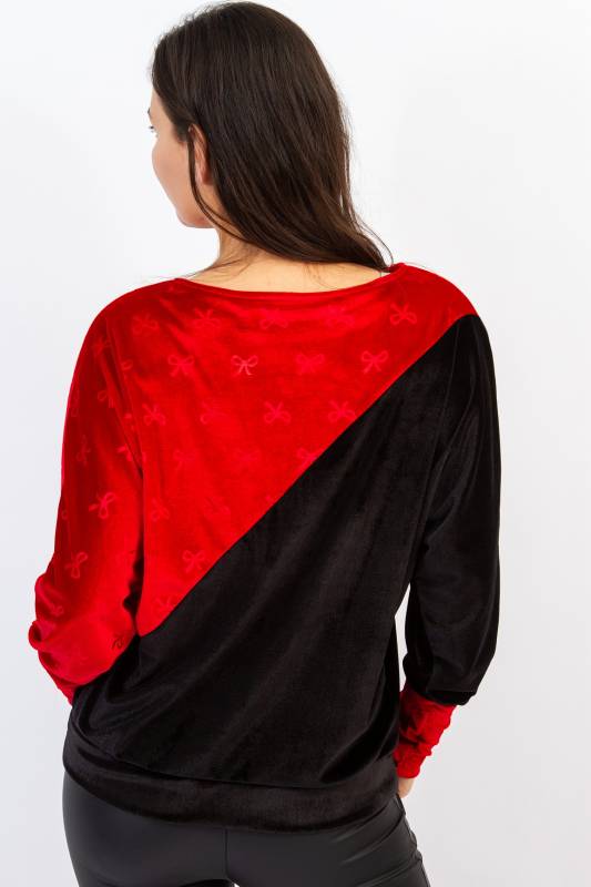 Divatos bársony diagonál masnis hosszú ujjú passzés felső