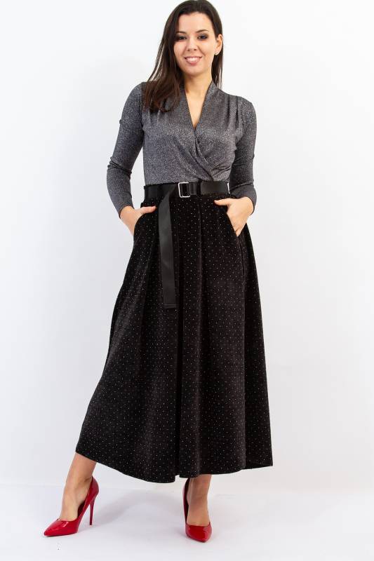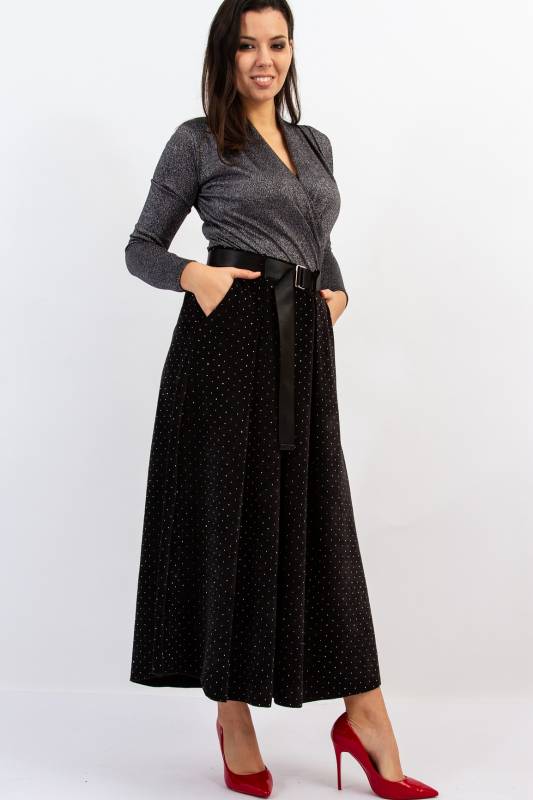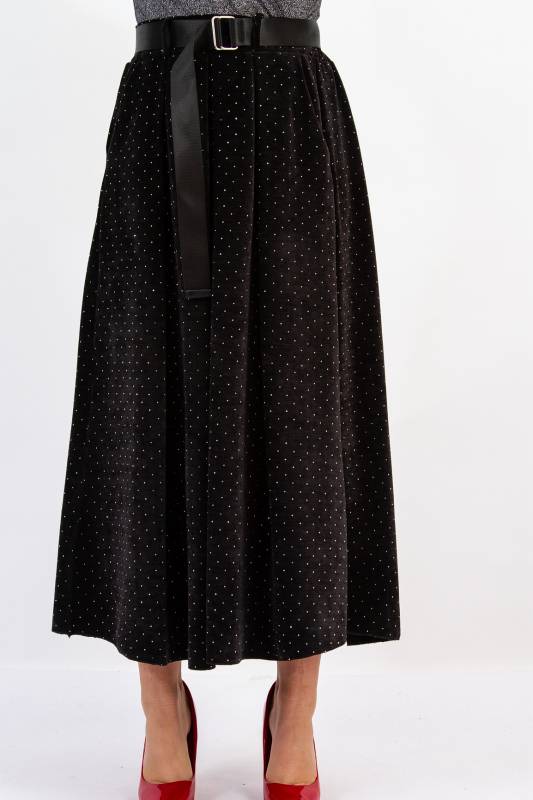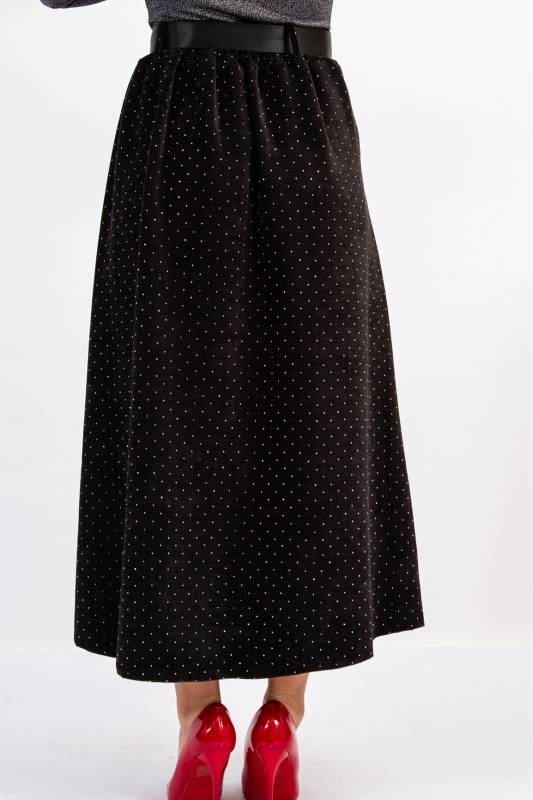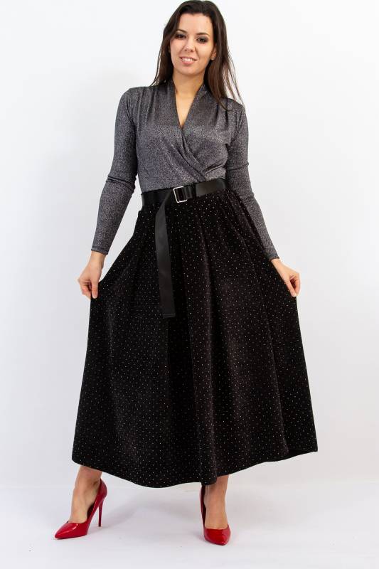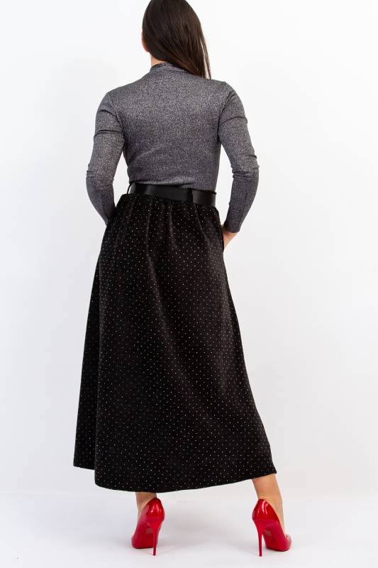 Divatos bársony maxi szoknya strassz díszítéssel és állítható övvel