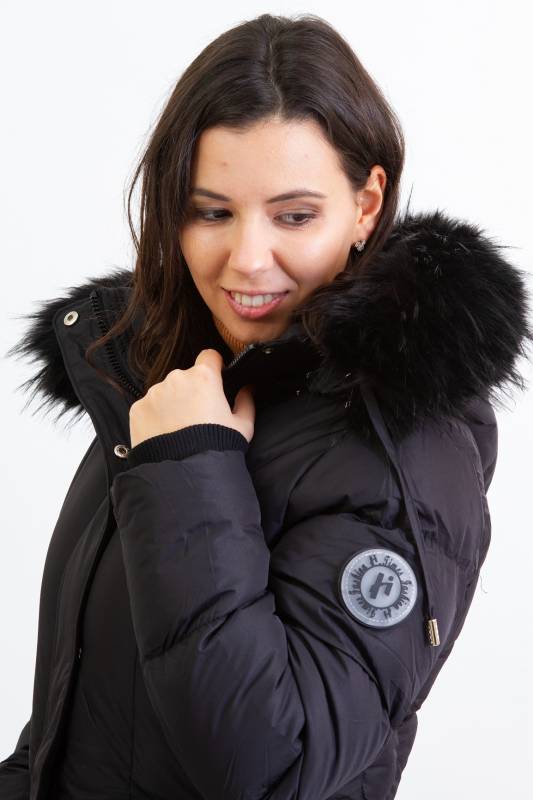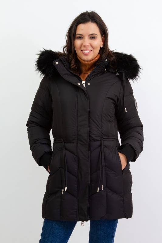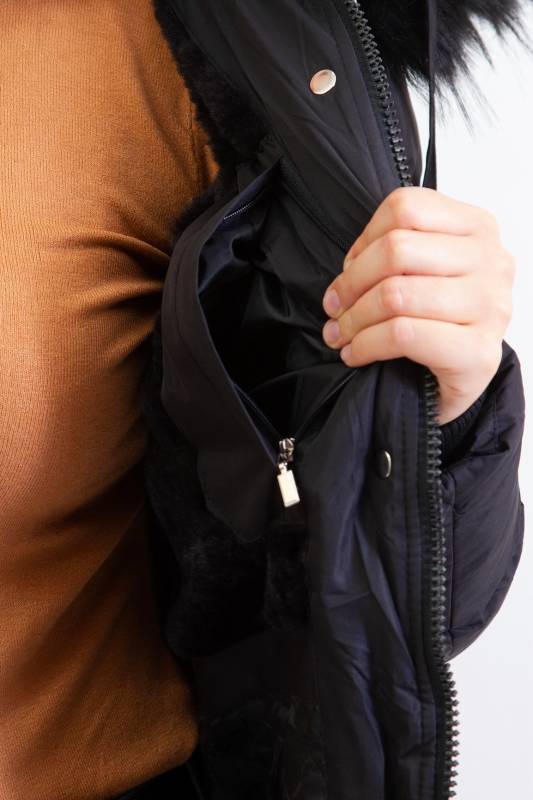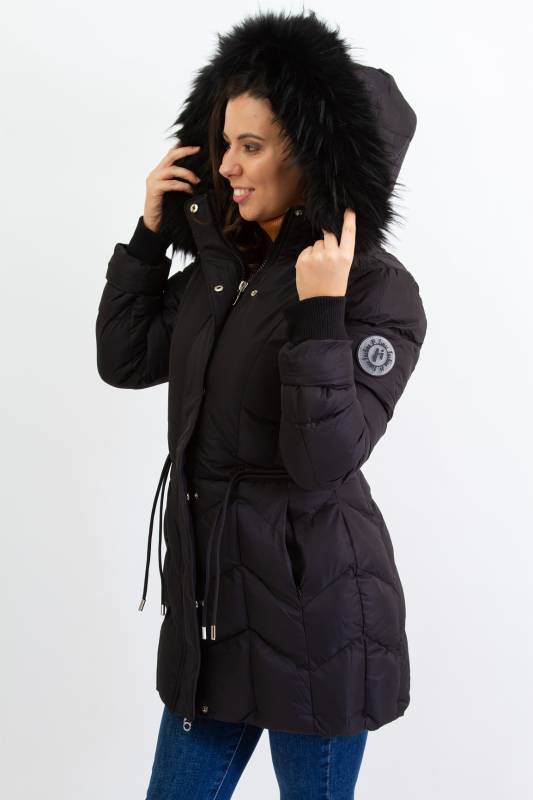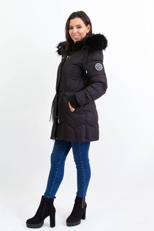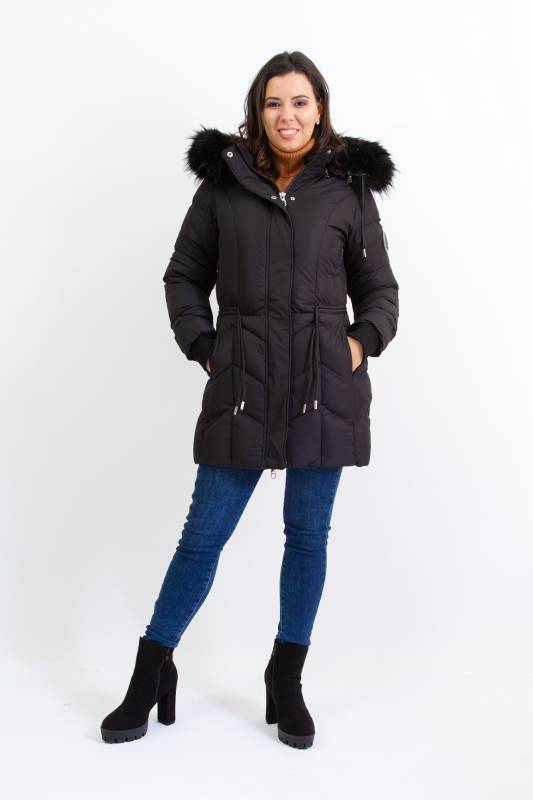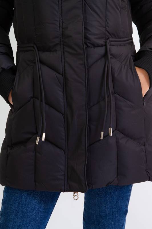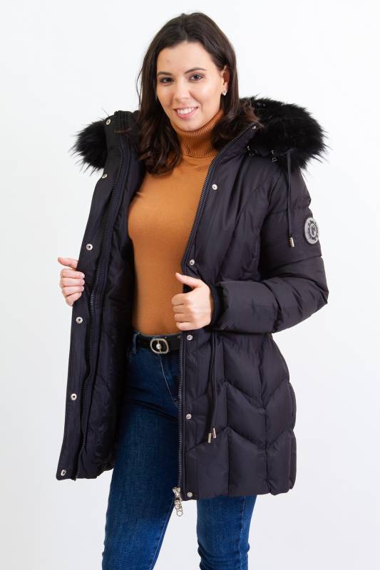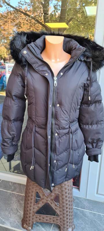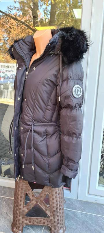 - Típusa: Divatos bélelt karcsúsított, hosszított steppelt női télikabát mandzsettas ujjal és szőrmés kapucnival