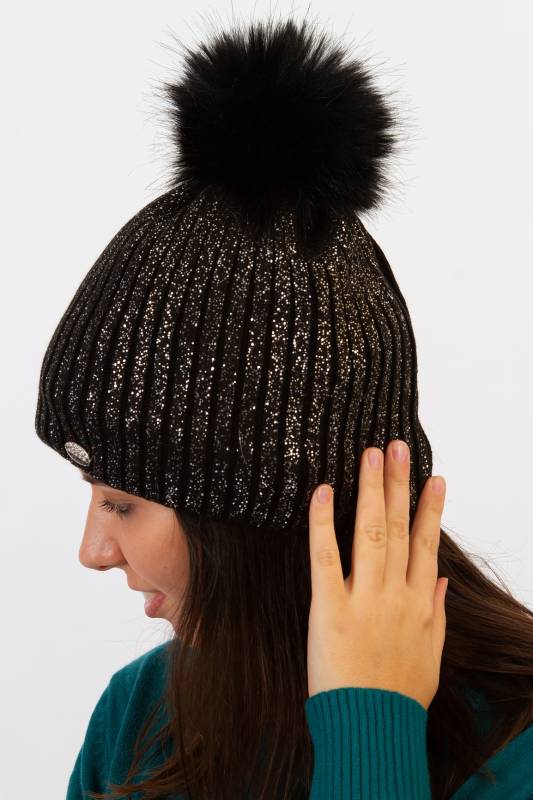 - Típus: Divatos félig bélelt gépi kötött csillogó szálas téli sapka szőrme pompommal