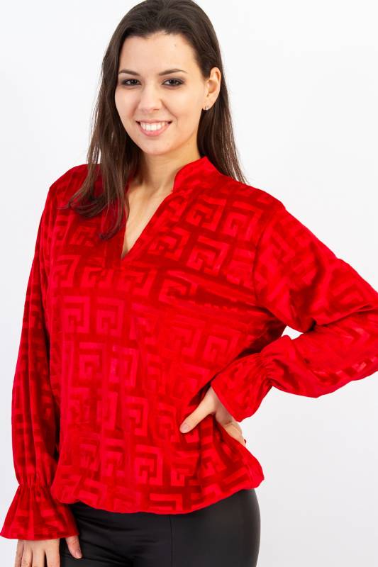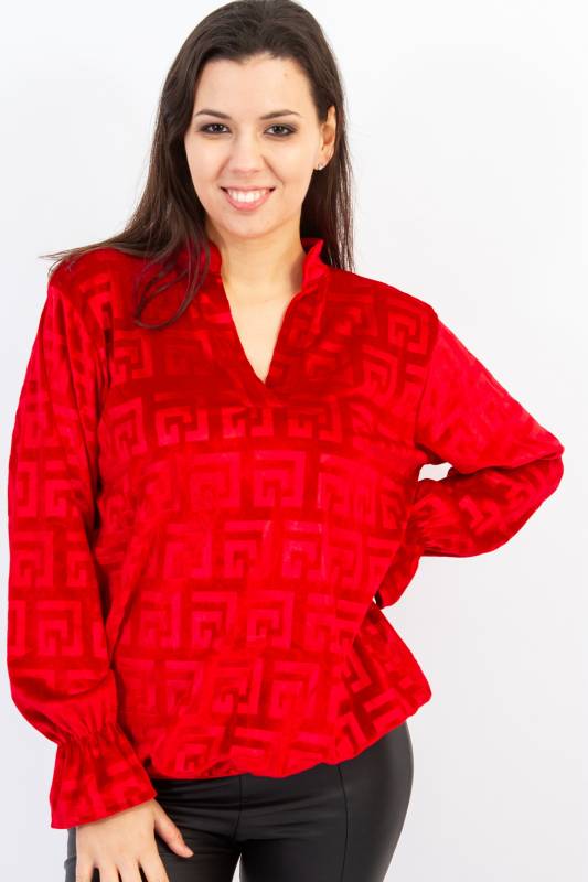 - Típus: Divatos fényes bársonyhatású geometrikus mintás modern V-Nyakú gumis szegélyű és ujjú női felső