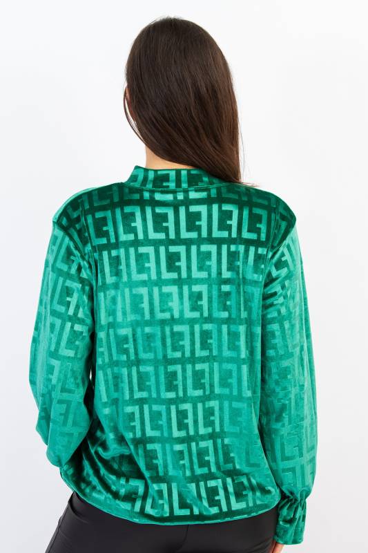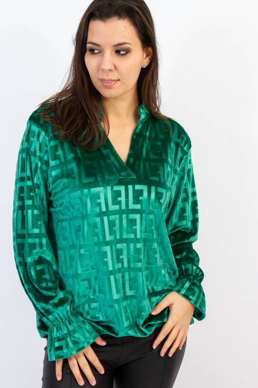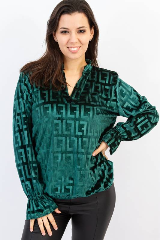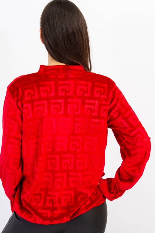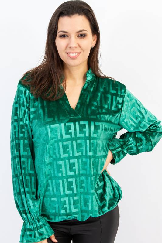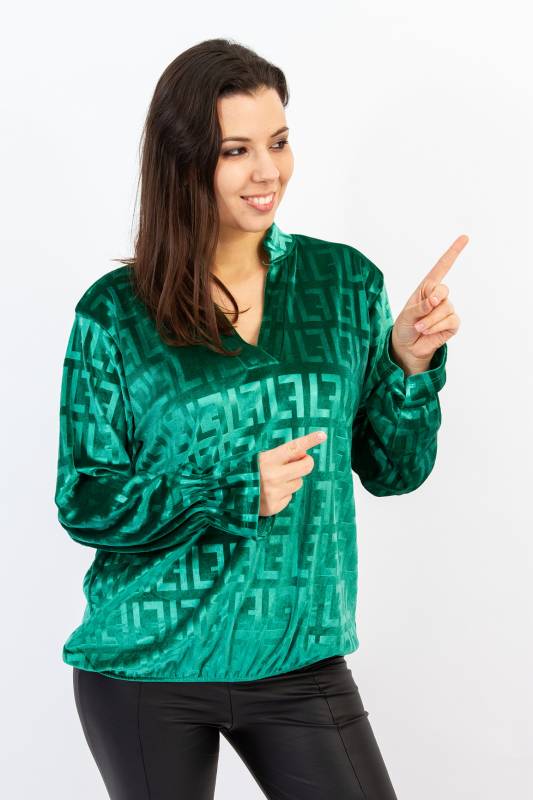 Divatos fényes bársonyhatású geometrikus mintás modern V-Nyakú gumis szegélyű és ujjú női felső
