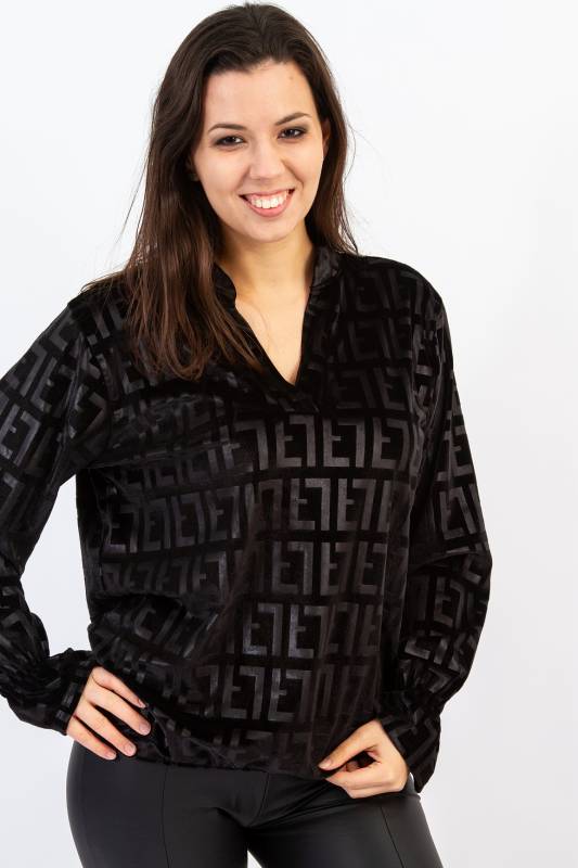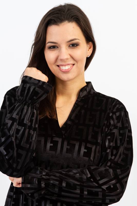 Ünnepi hangulatú hétköznapi felső. Modern elegancia, barsony részletek. Kontrasztos megjelenés kombinációja elegáns megjelenést nyújt.