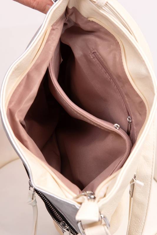 - Külső rész: Műbőr, hátul 1 cipzáros zseb, elöl cipzár, oldalt egy cipzár
