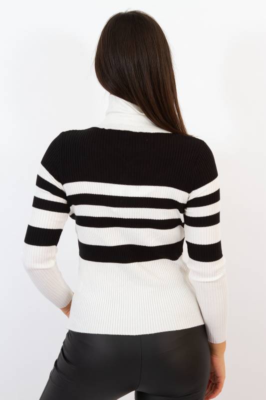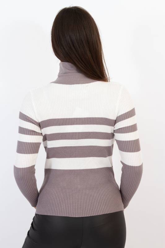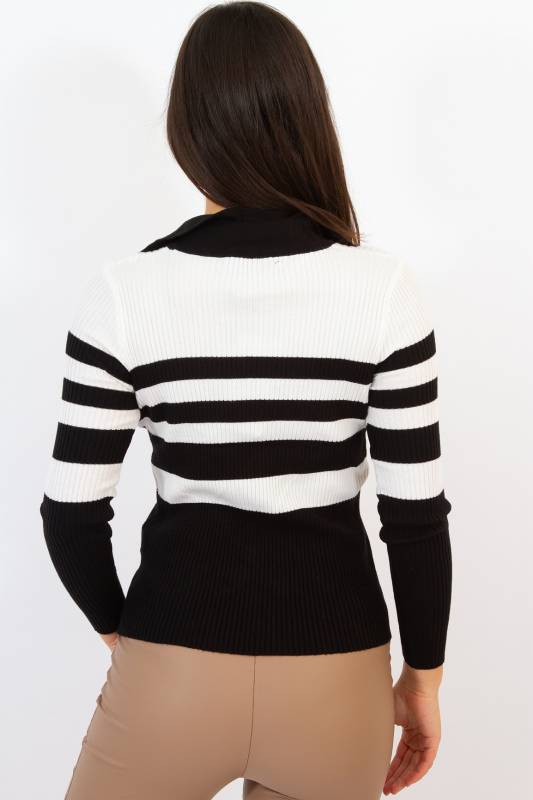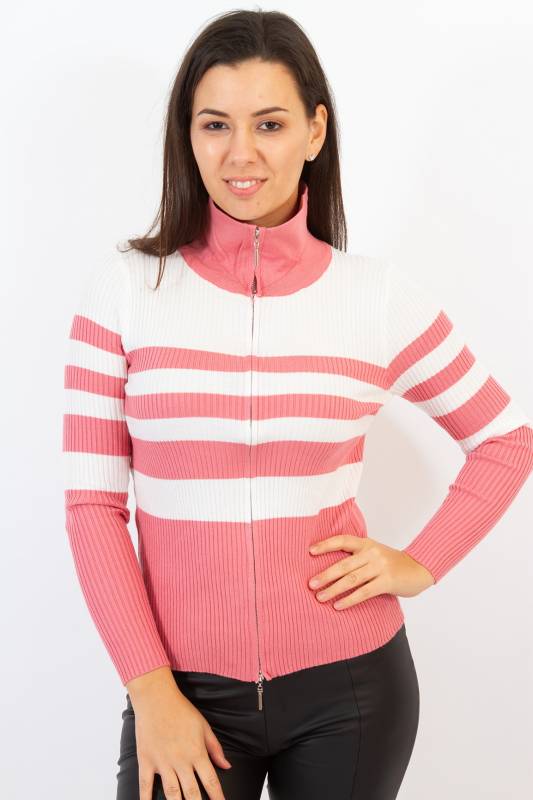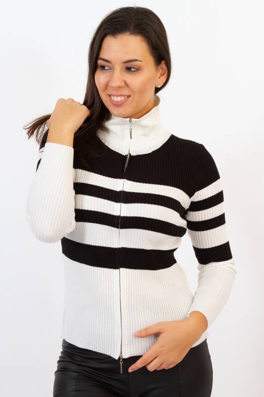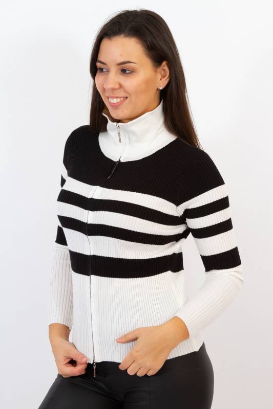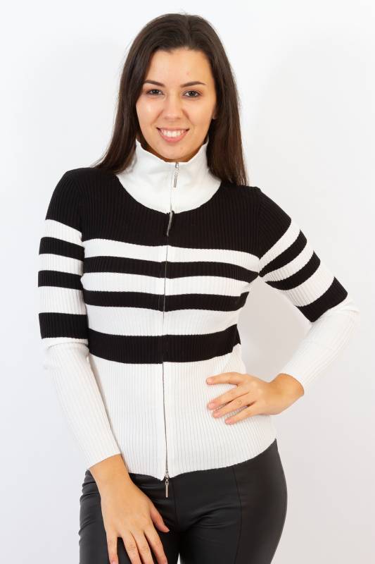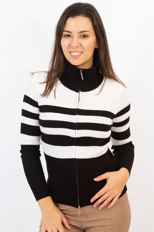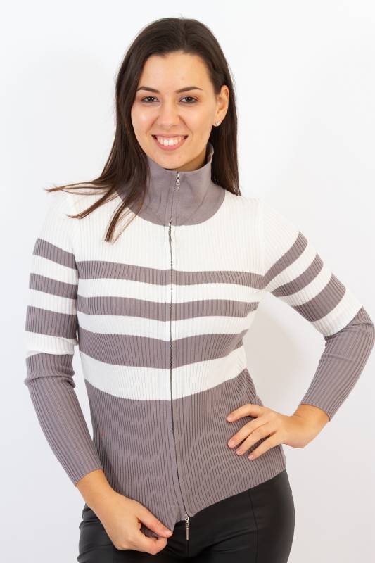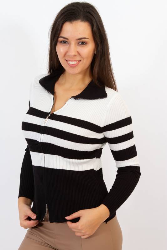 - Típus: Divatos galléros cipzáros hosszú ujjú gépi kötésű csíkos kardigán
