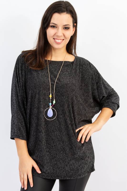 - Típus: Női bő fazonú anyagában ezüst szálas láncos felső