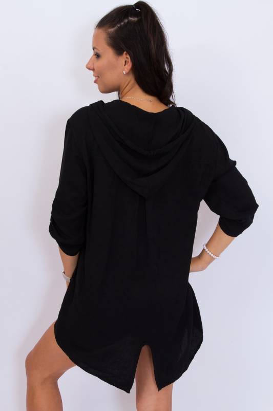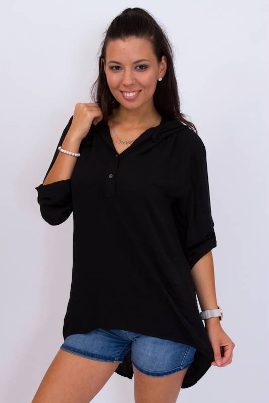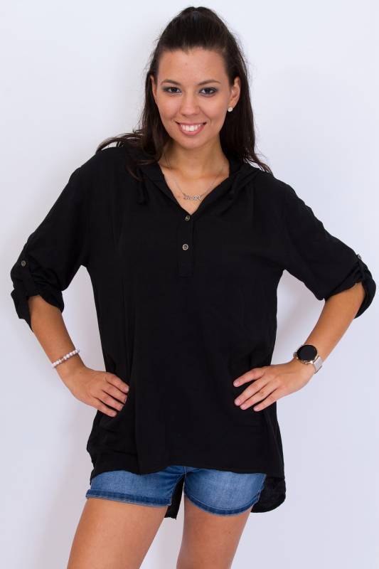 Divatos női háromnegyedes roll up ujjú kapucnis fekete felső