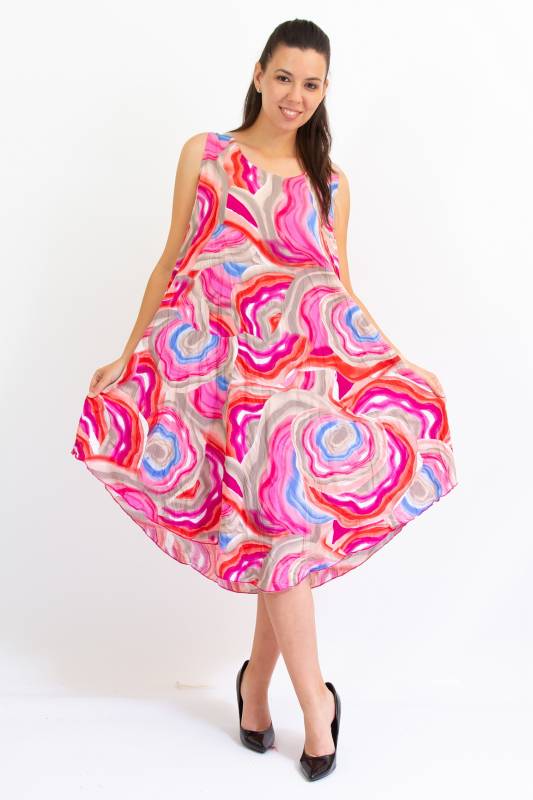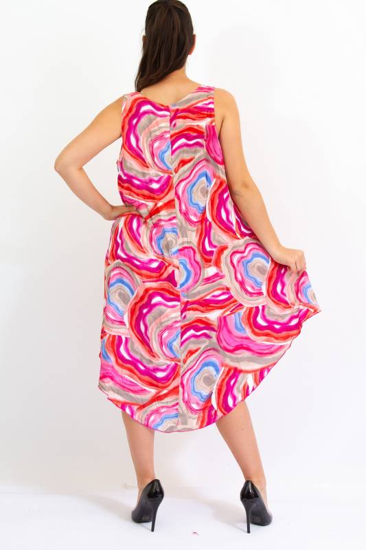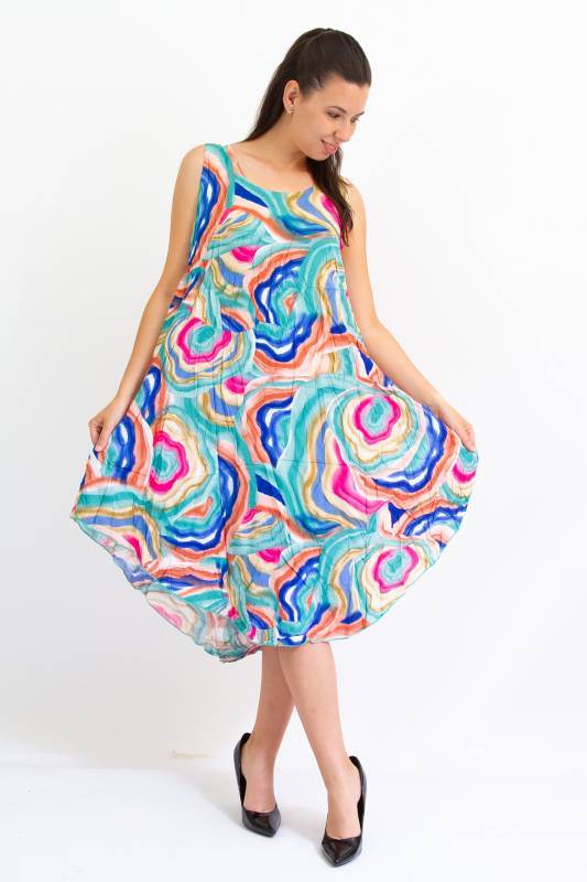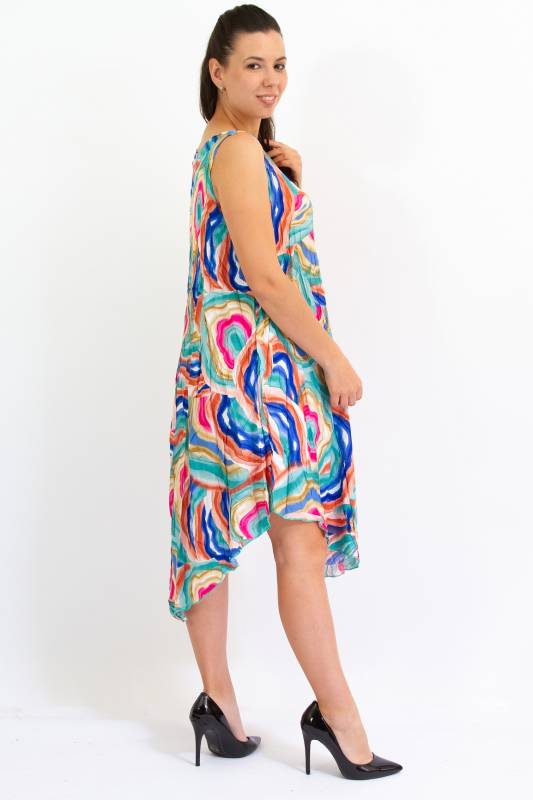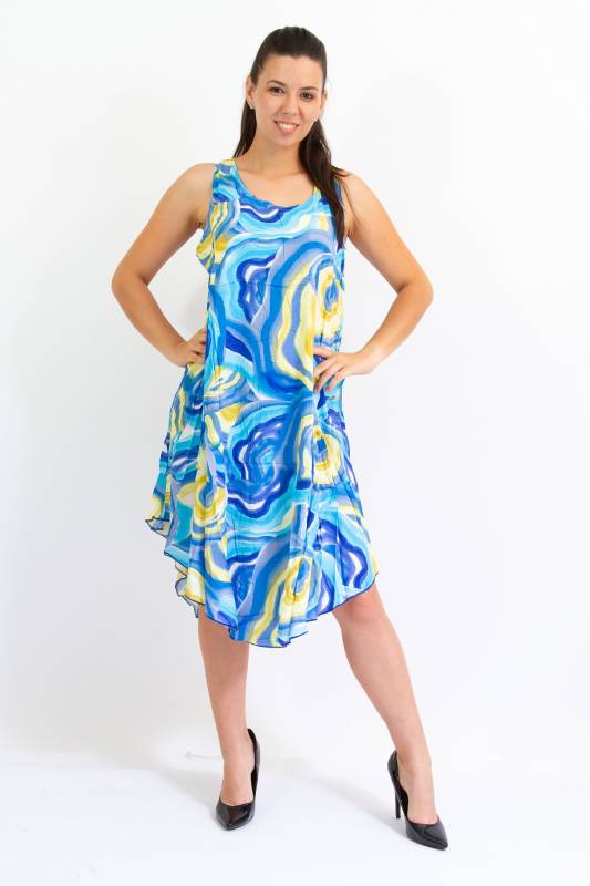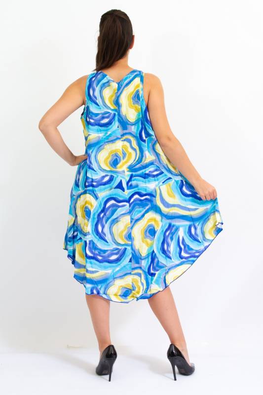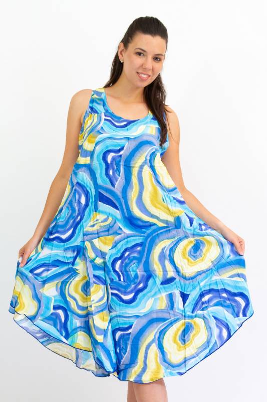 Divatos nyári hullám mintás A vonalú ujjatlan mini/midi ruha