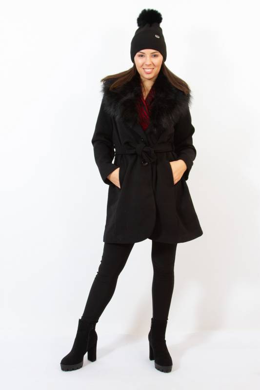 - Típusa: Elegans női karcsúsított szövetkabát szőrme prémmel