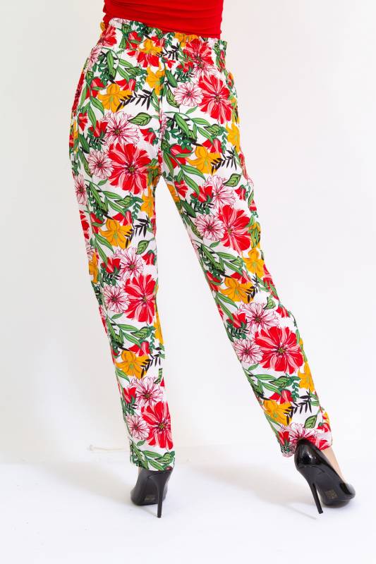 Lenge anyagú virág mintás gumis derekú nyári nadrág