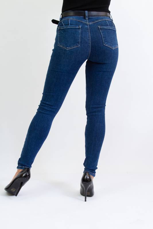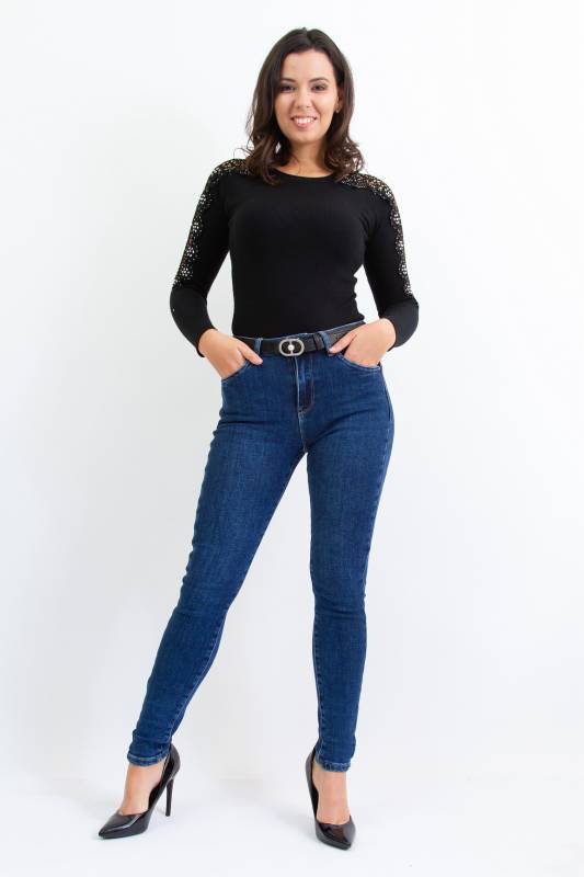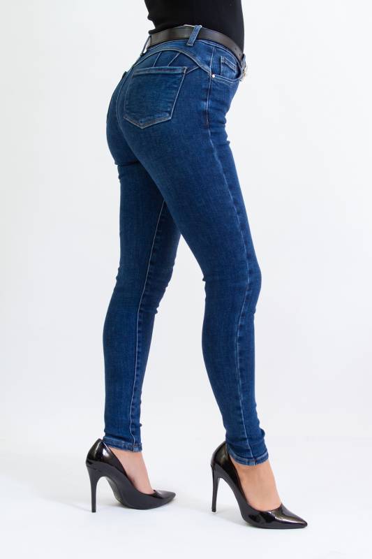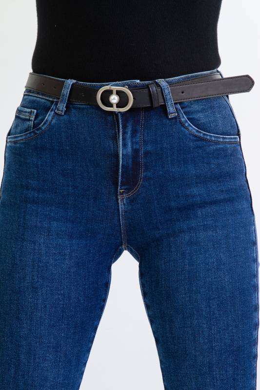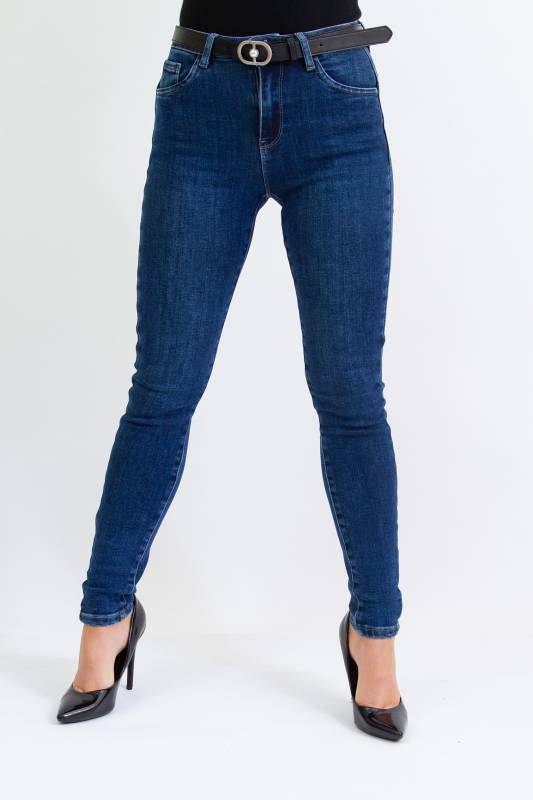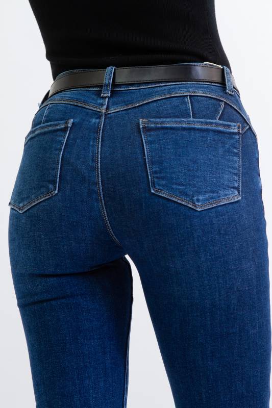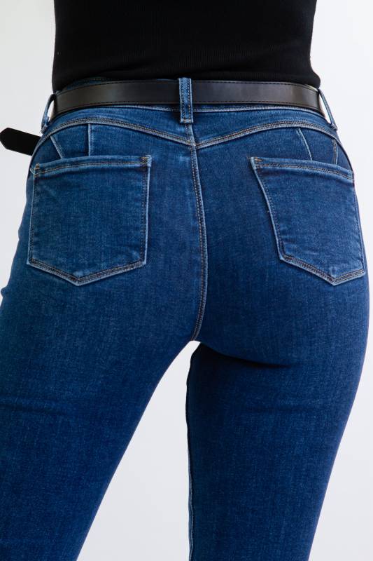 REDRESS Divatos push up-os szexi magasított derekú csőszárú női farmernadrág fekete övvel