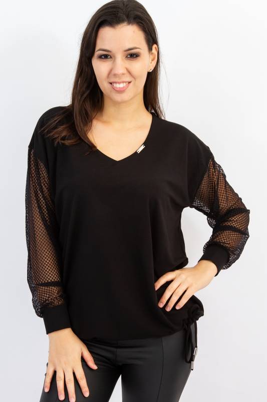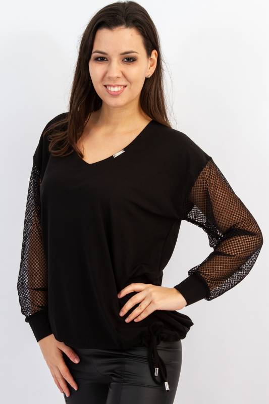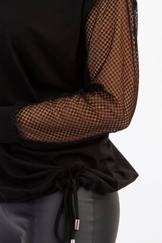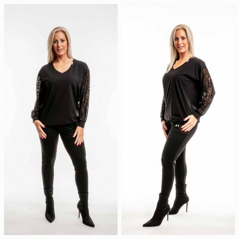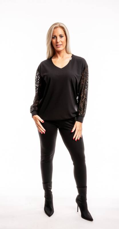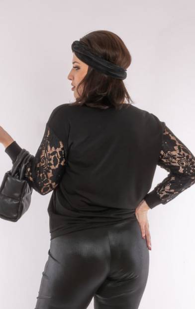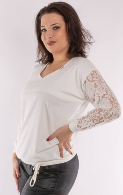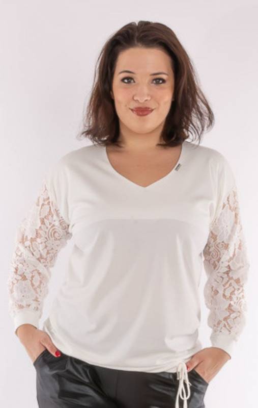 Viseld azt amit szeretsz! Ebben a felsőben ragyogni fogsz. Elegáns forma, időtlen szín, ujját csipke díszíti. Kifinomult szabásvonala könnyedén puhán simul az alkatra. Modern kialakítású, tökéletes egyensúly a trend és az időtlenség között. Minden test típusnak hízelgő felső. Csípőnél húzózsinorral szabályozható.