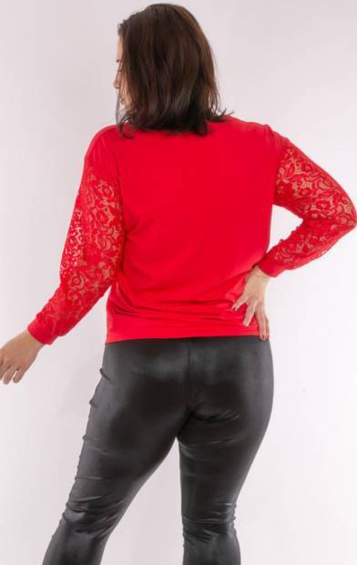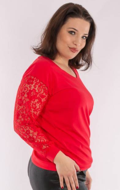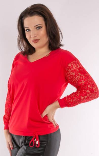RUCY FASHION Alkalmi V nyakú csipkés ujjú alján összehúzható felső
