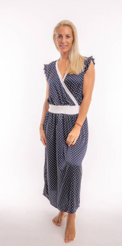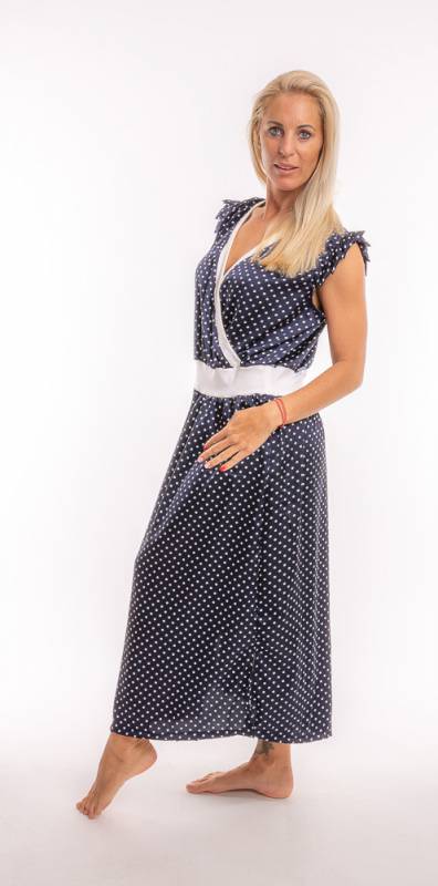 - Típus: Divatos mellrésznél átlapolt pöttyös mintás rövid lepke ujjú női midiruha