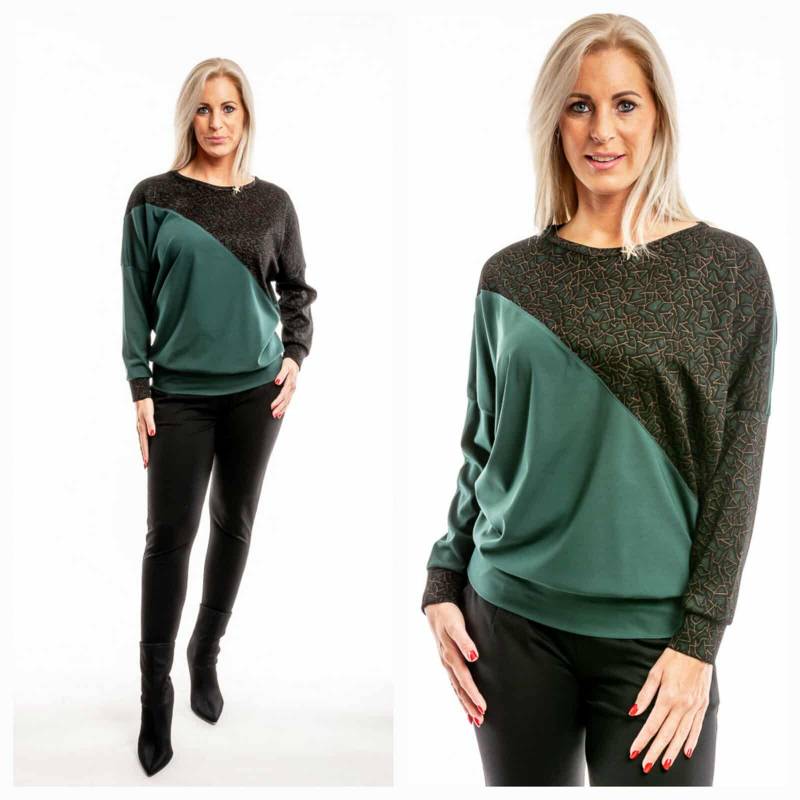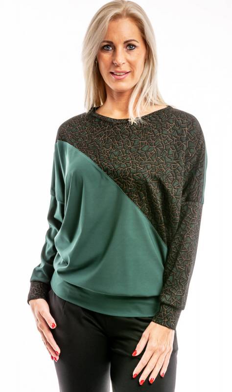 RUCY FASHION Hosszú ujjú formázott divatos passzés felső fenyőzöld-zöld márvány minta