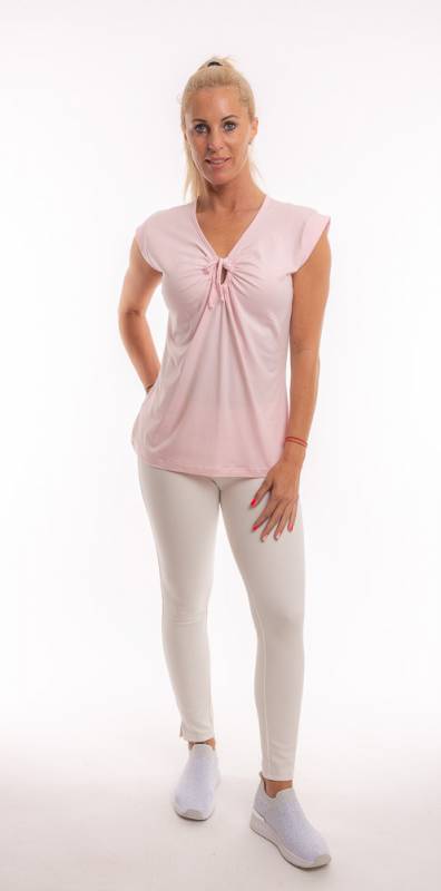 RUCY FASHION Nöi rövid ujjú elől húzott masnis felső rózsaszín