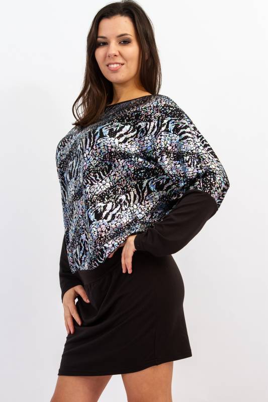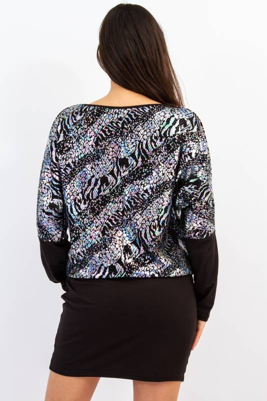 - Típus: Alkalmi fémes csillogású, denevérujjú mini ruha