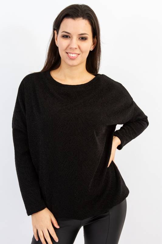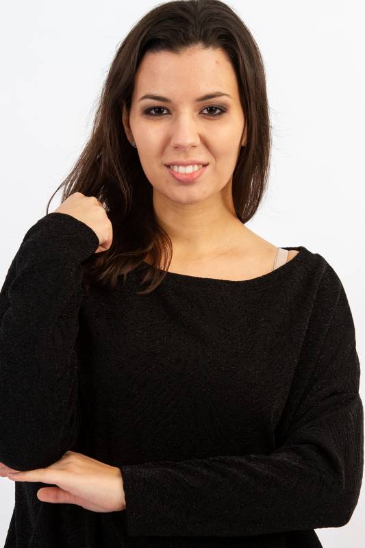 Ünnepi hangulatú hétköznapi felső. Modern elegancia, fenyes fekete mintas. Kontrasztos megjelenés kombinációja elegáns megjelenést nyújt.