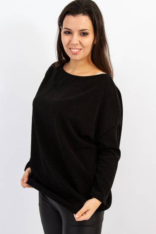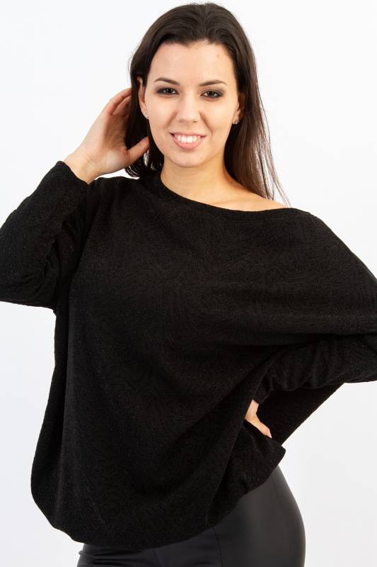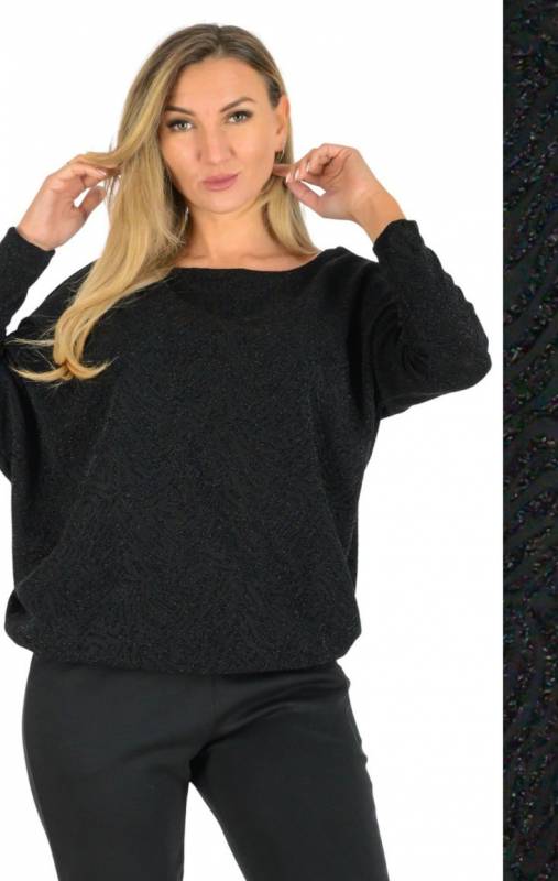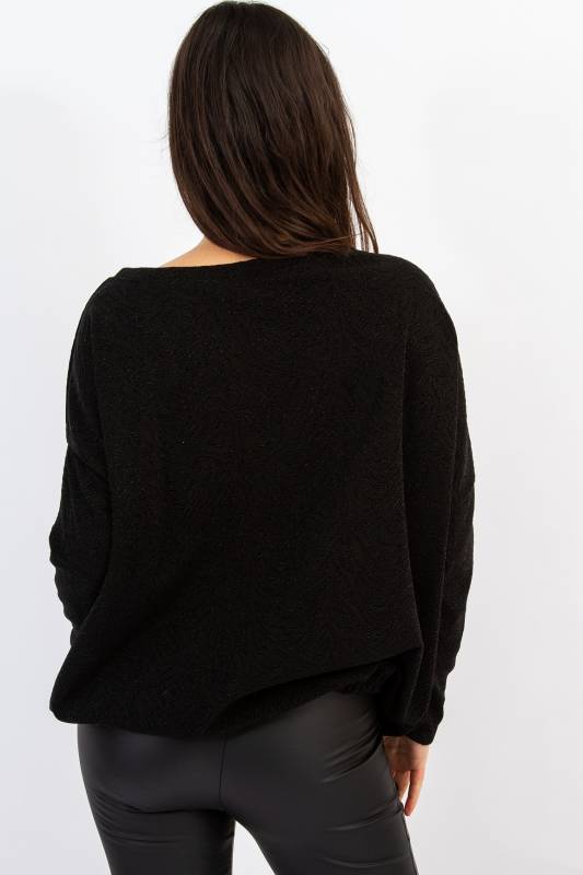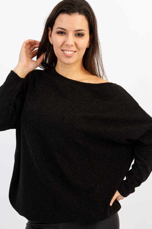 YESSTORY Lurex szálas fekete, kedvenc, aszimmetrikus, gumis aljú felső