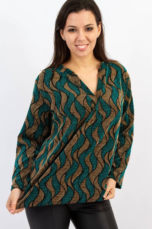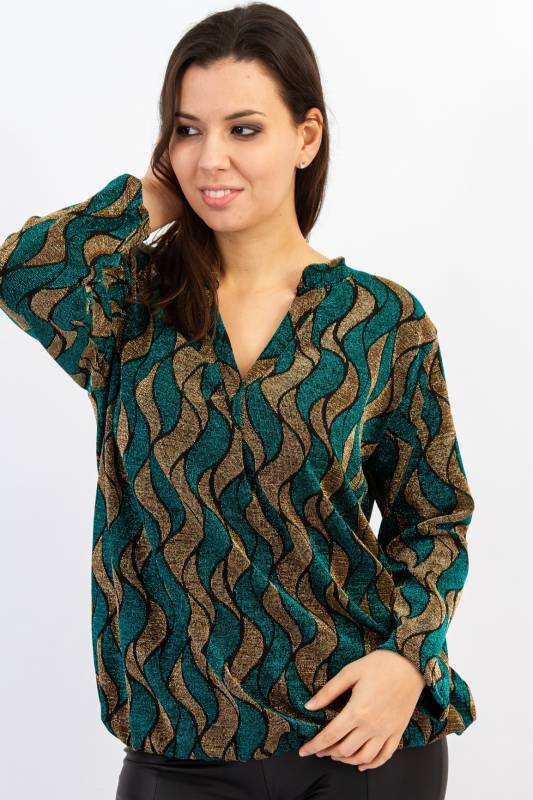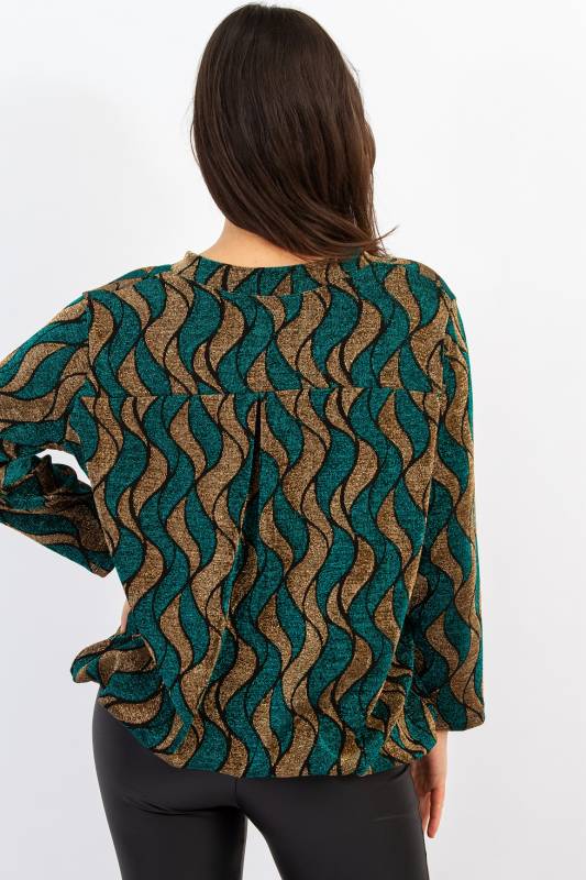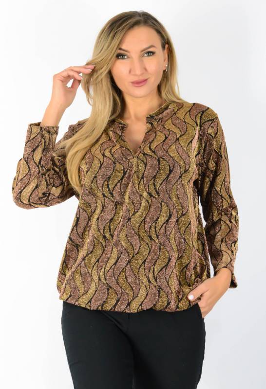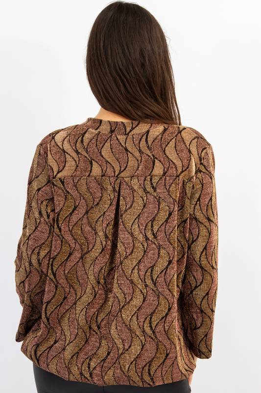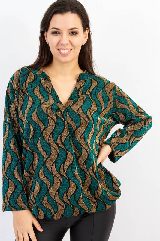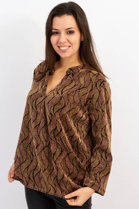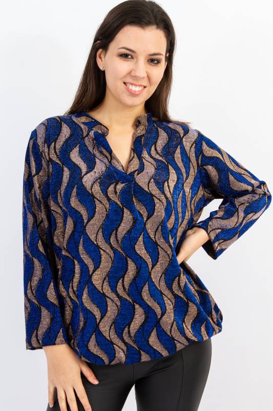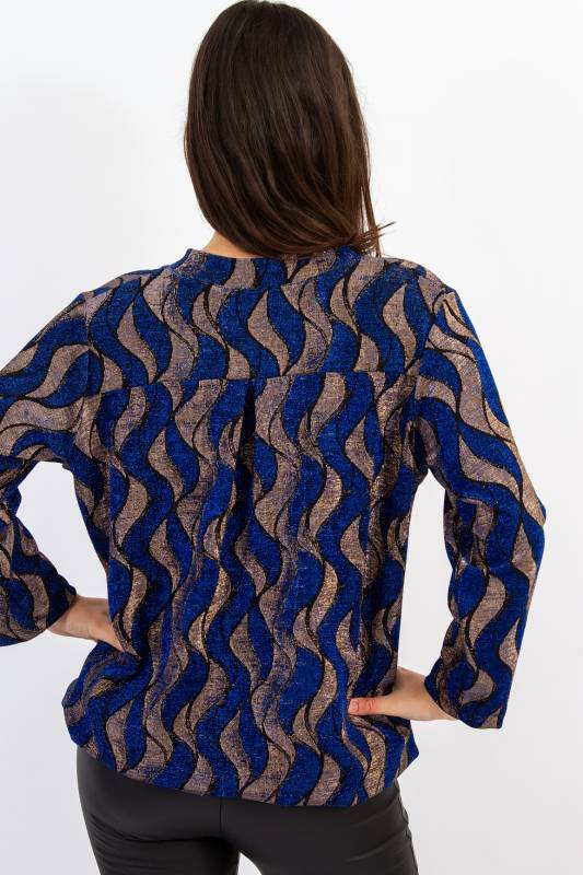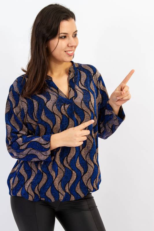Ünnepi hangulatú hétköznapi felső. Modern elegancia, fenyes mintás. Kontrasztos megjelenés kombinációja elegáns megjelenést nyújt.